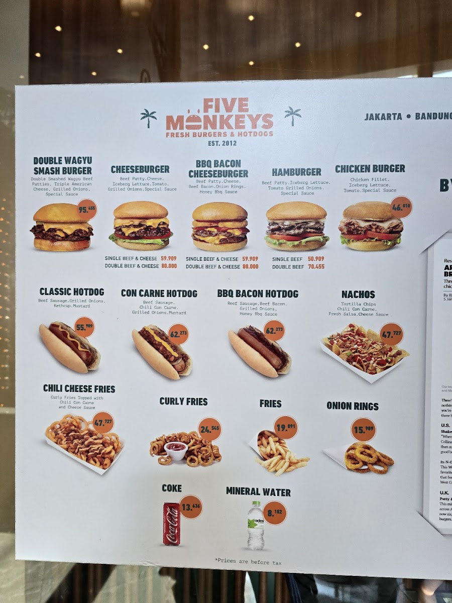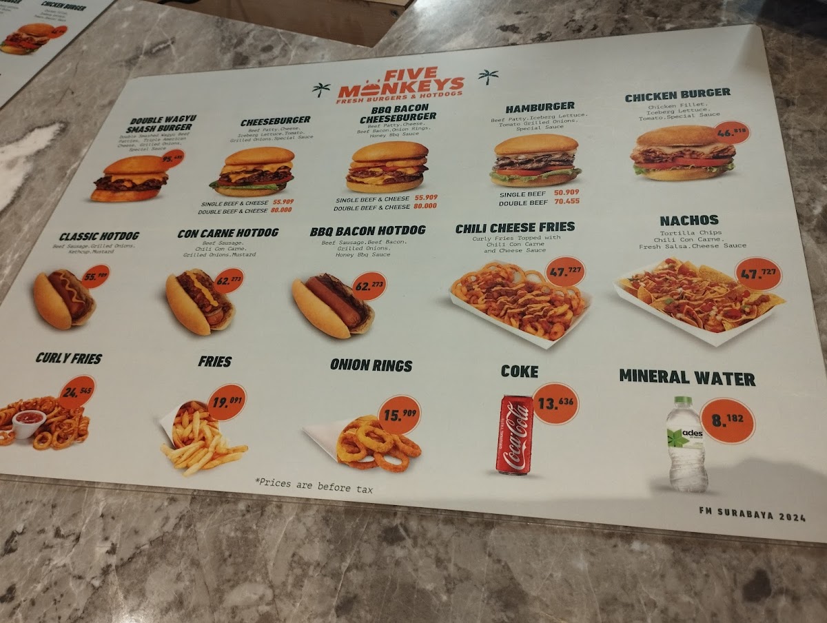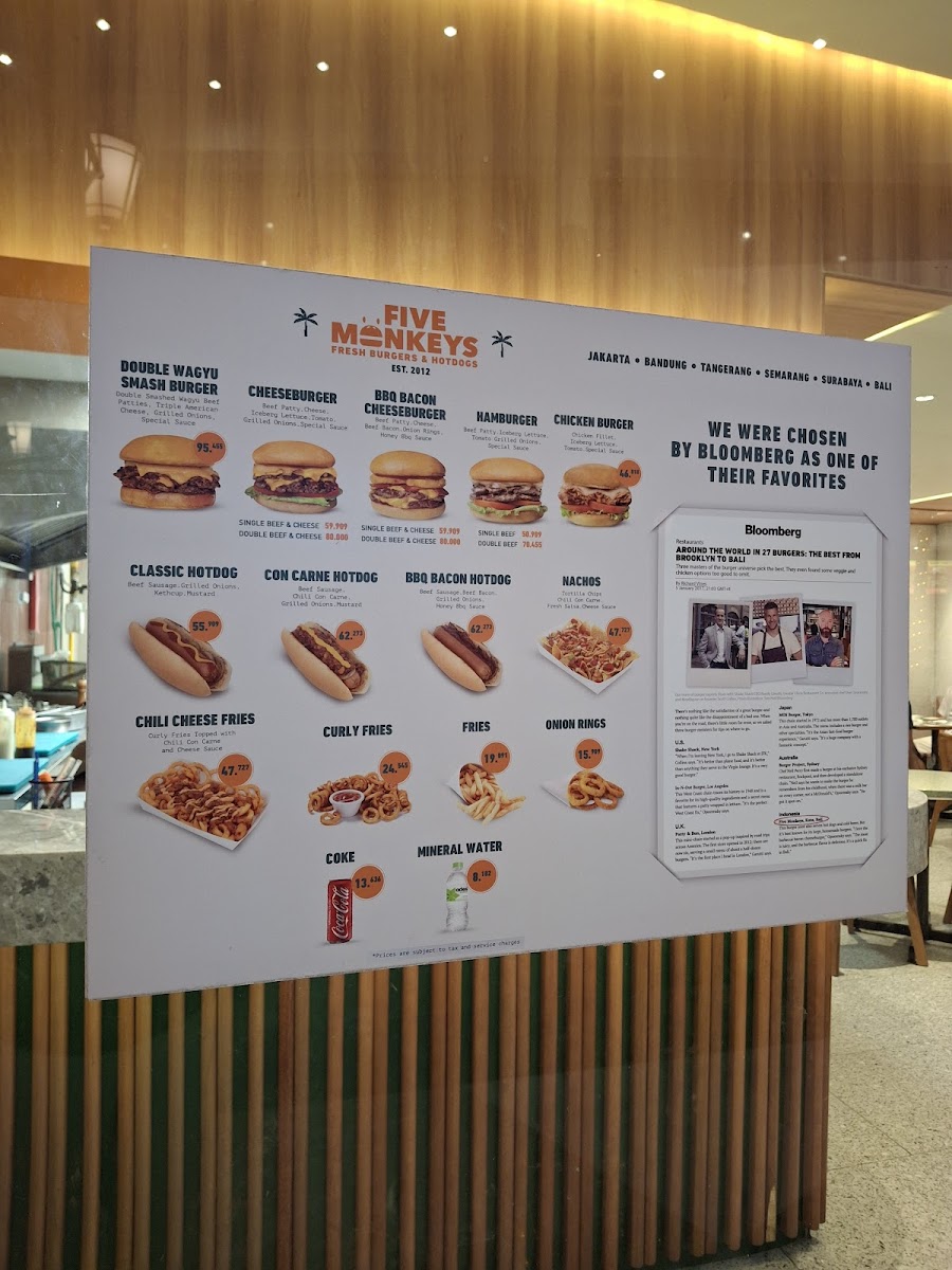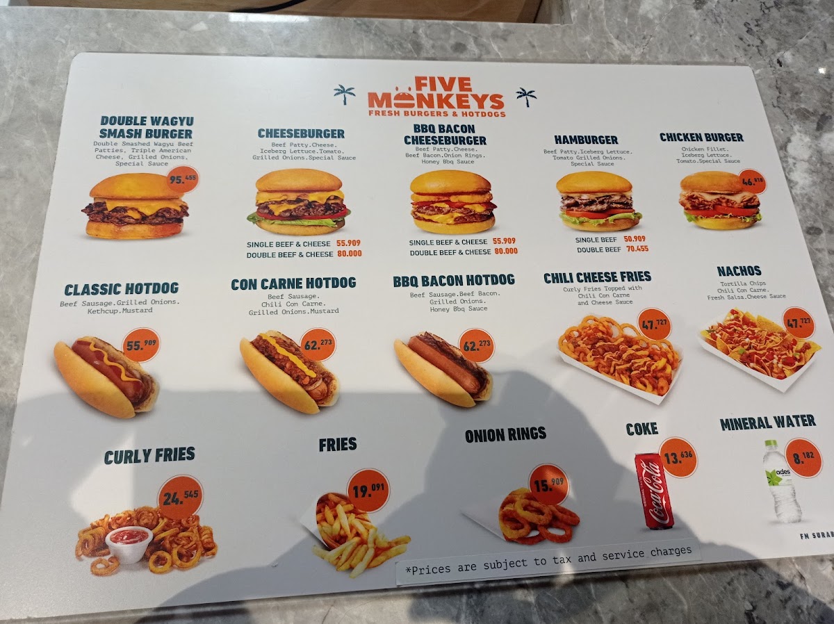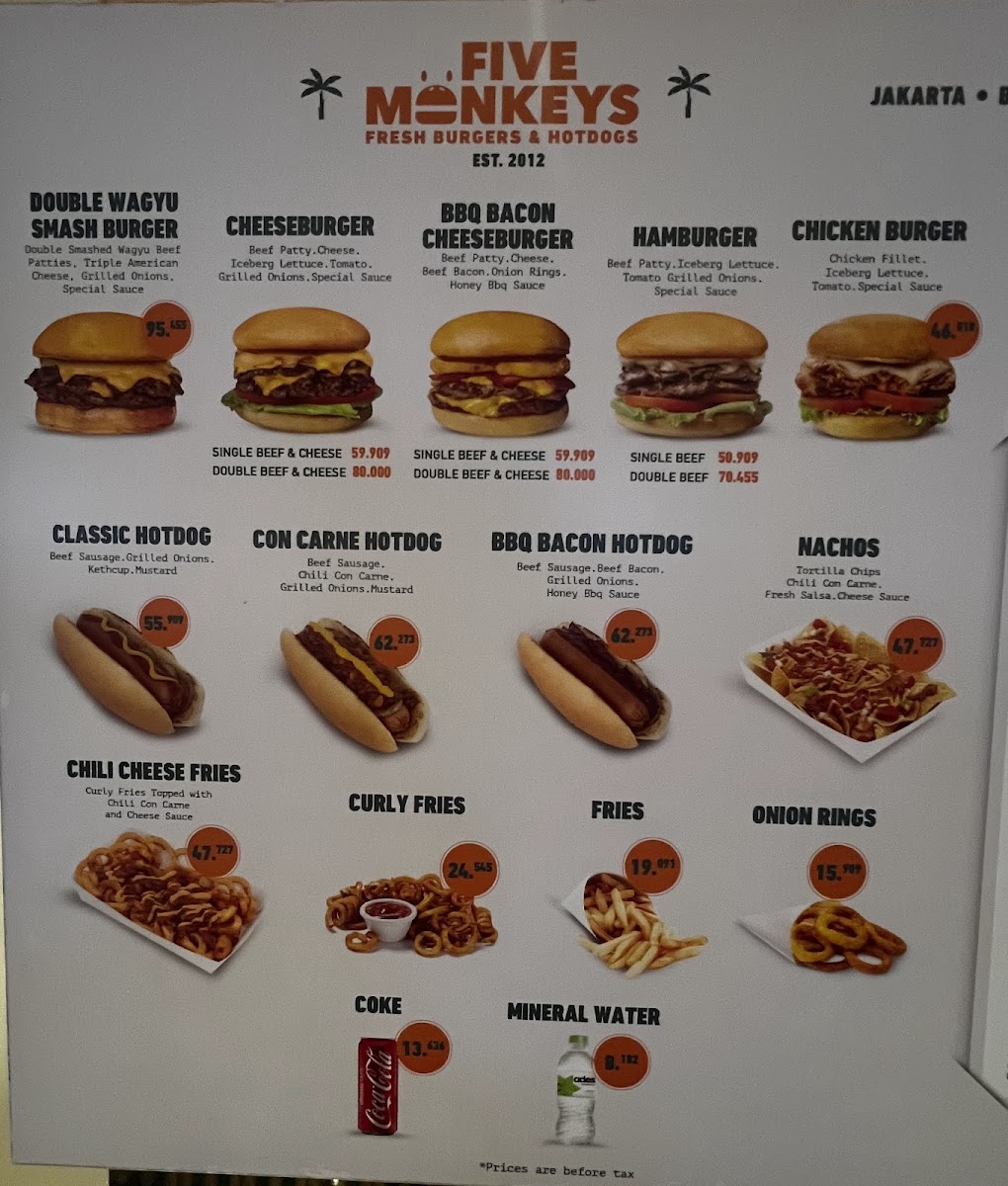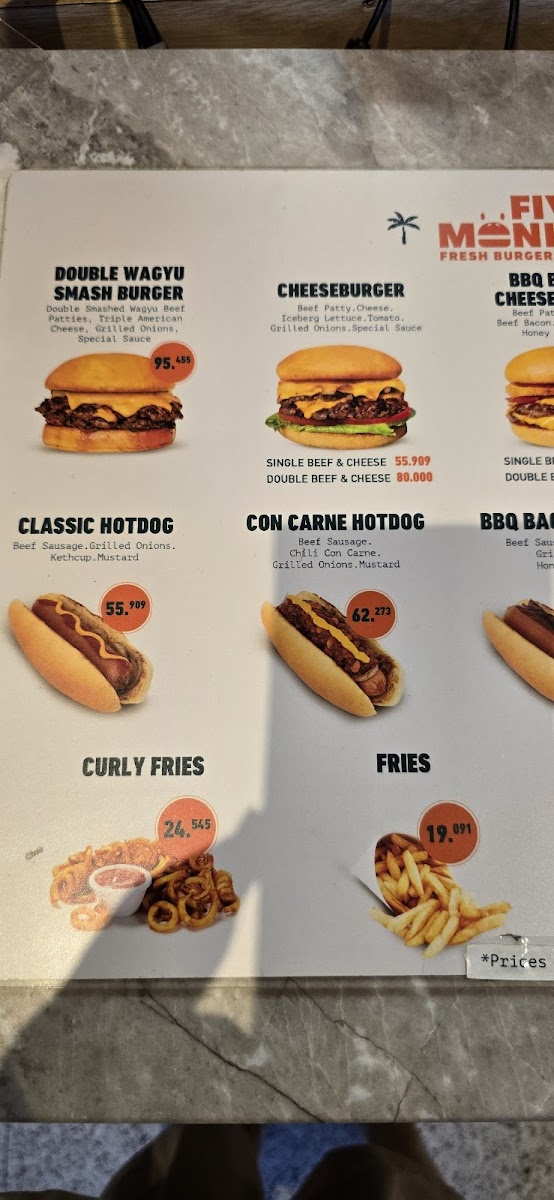 Five Monkeys Burger - Galaxy Mall 2 Menu
